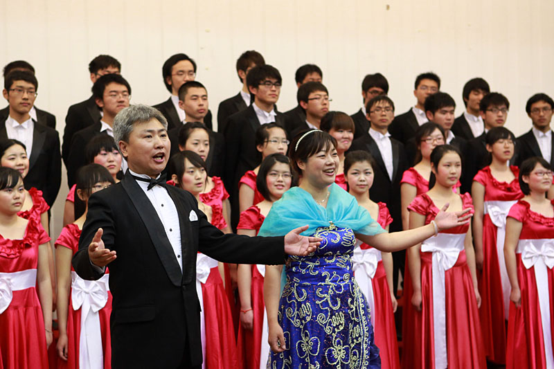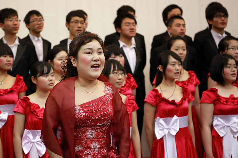 本次高雅艺术进校园活动学院特别邀请到了省委宣传部、教育厅和财政厅遴选的江苏省高雅艺术进校园拓展项目——南京理工大学大学生合唱团。演出的曲目兼具了高雅经典和时代元素,《我的太阳》、《谷穗上的蝈蝈》、《乡间的小路》、《在希望的田野上》一首首歌曲,感染着现场的观众,气势磅礴的混声合唱《心愿》赢得了现场学生长时间的掌声,我院杨春梅、费柯两位老师的助演也使得这场演出中两校交流更具深意。精彩的演出博得了师生的一致好评,演出在观众热烈掌声中圆满落下帷幕。