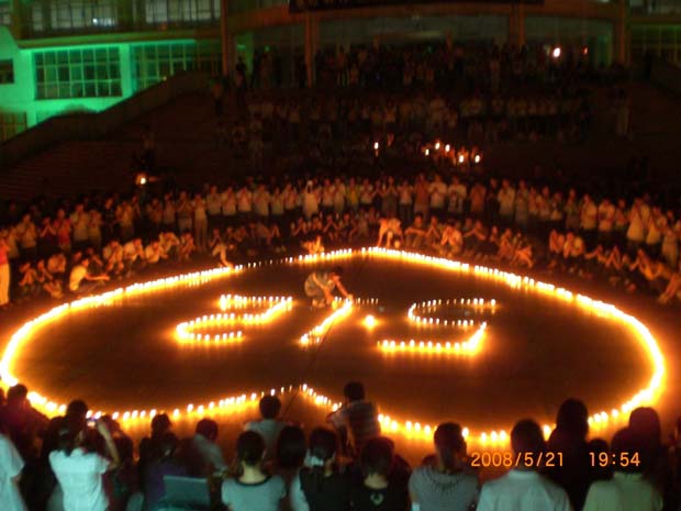 5月21日晚,我院农艺系、牧医系、生物工程系千余名师生聚集在北校区图书馆前广场,举行“祈福点亮希望” 汶川地震千人祈福活动,为逝者送行,为生者祈福。