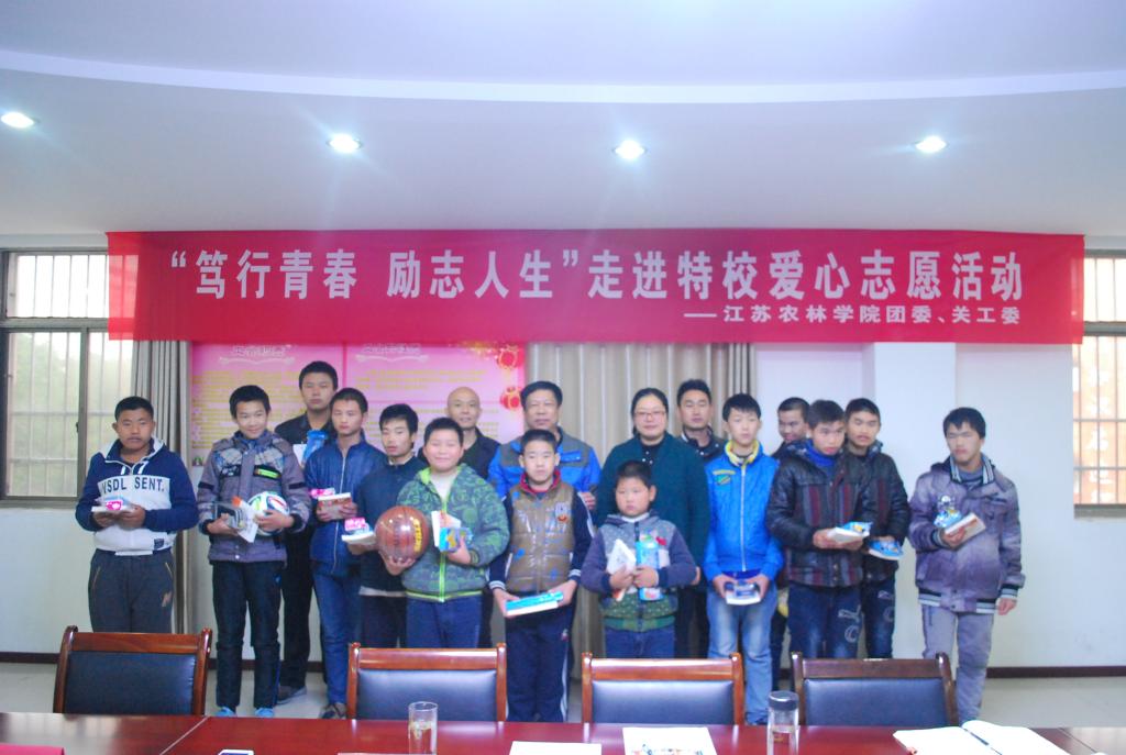 11月17日,在世界大学生日来临之际,学院关工委、团委组织爱心志愿者来到句容市博爱学校,用雷锋月系列活动之“以旧换‘心’”爱心义卖所筹善款5706.7元购买了一批文具用品、《生命的支撑》书籍和体育器材等物品,献给博爱学校的孩子们,志愿者们用精彩的表演和热情的互动给博爱学校的学生送去了欢笑与温暖。