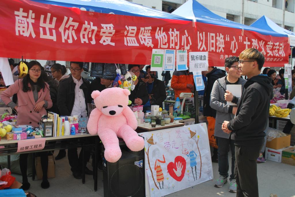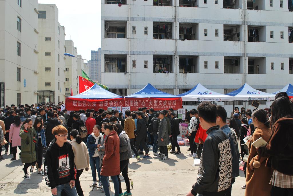 3月15日,由我院团委组织,各系学生积极参与的以旧换“心”,爱心义卖活动在食堂门口举行。此项活动从2014年至今已有四个年头,活动现场人头攒动,热闹非凡。