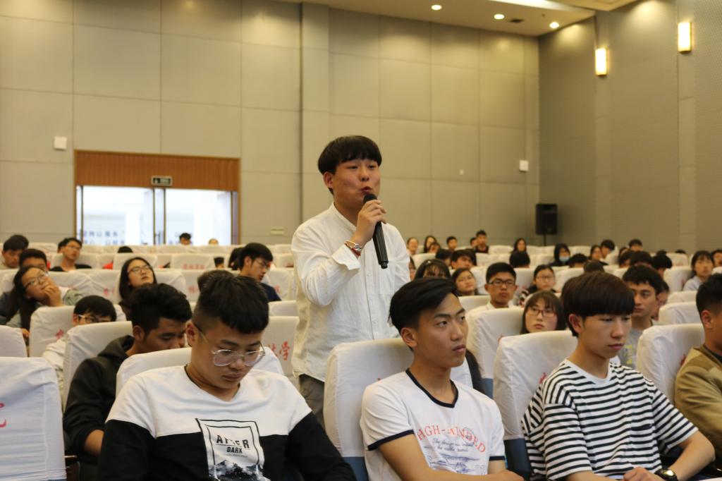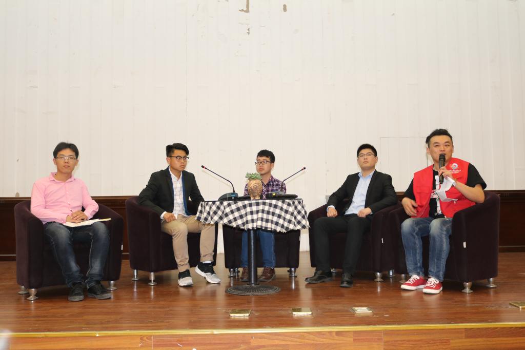 我院“西部计划”“苏北计划”(以下简称“两项计划”)优秀志愿者刘梅老师,倪四海、马以全、尤文超、夏中春四位同学分享了自己在西部、苏北开展志愿服务的一个个励志故事。交流环节中,同学们与志愿者们进行热烈互动,志愿者们分别对“两项计划”志愿者的报名时间、工作地点和工作内容等同学们关心的问题一一做了详细回答。