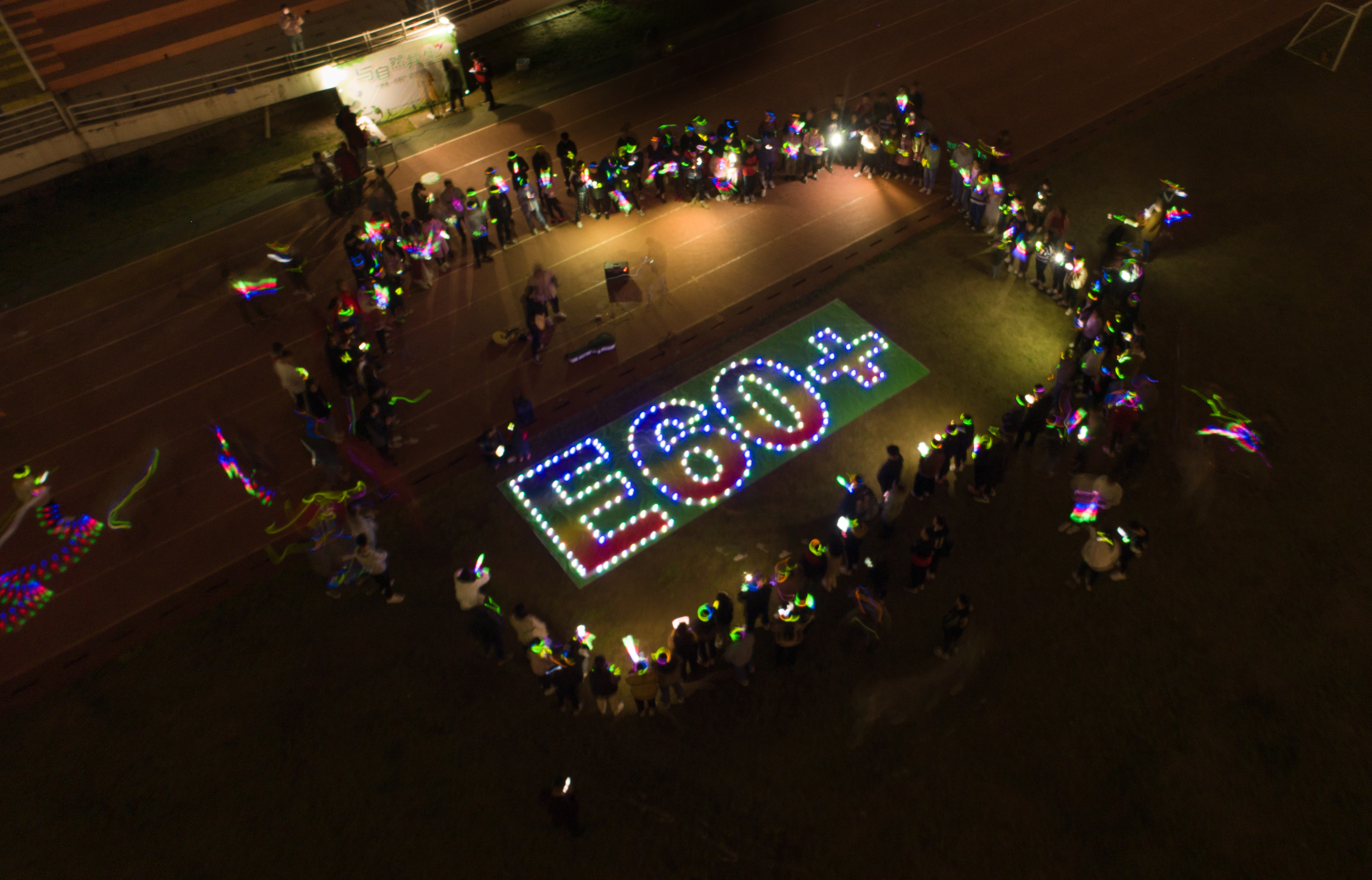 3月28日晚,为响应“地球一小时”全球性节能活动,学院团委在体育场开展了以“与自然共生”为主题的“地球一小时”荧光夜跑活动。
