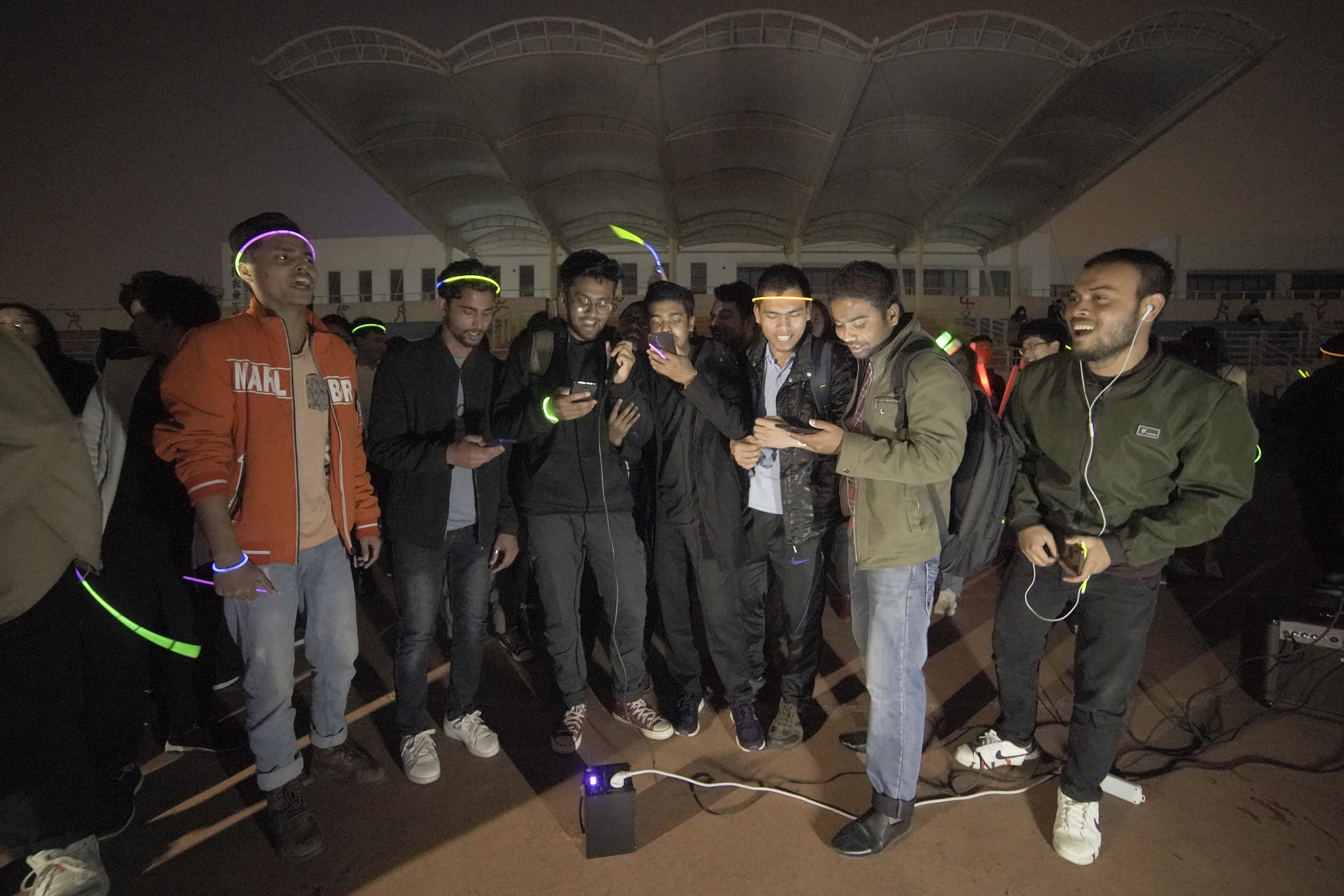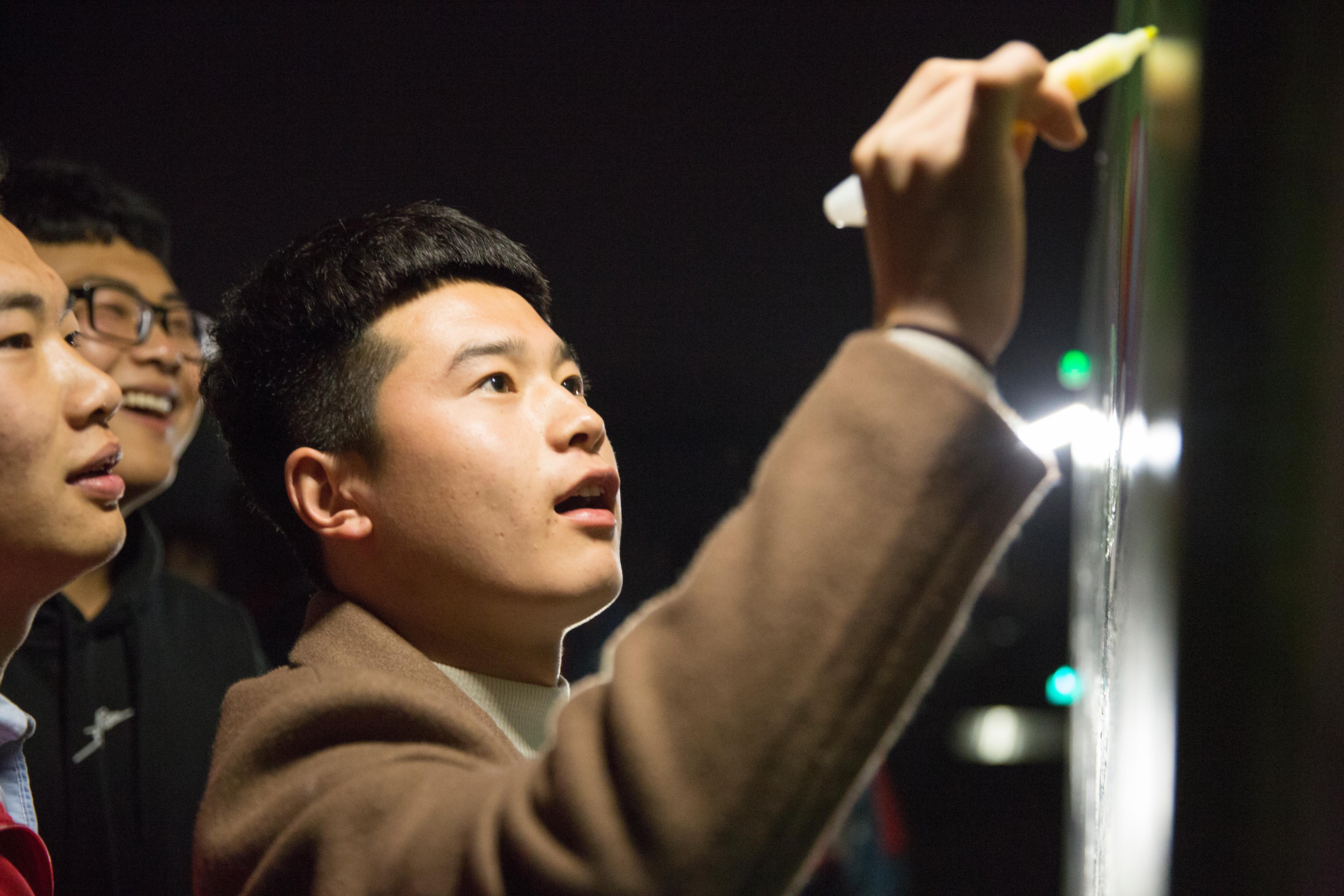 同学们携带五颜六色的荧光棒,有的编织成手环,有的编织成头环,在黑色中形成了一道五彩的风景线。夜跑中,同学们还参与了荧光秀影、荧光添彩、荧光祝福等丰富多彩的活动。夜跑后,一场原汁原味的校园音乐会在体育场拉开帷幕,同学们围着“E60+”,挥舞着手中的荧光棒,欣赏着动听的歌声,与自然同呼吸,与夜色融为一体。学校留学生也积极参与其中,表演了自己民族的歌曲。
