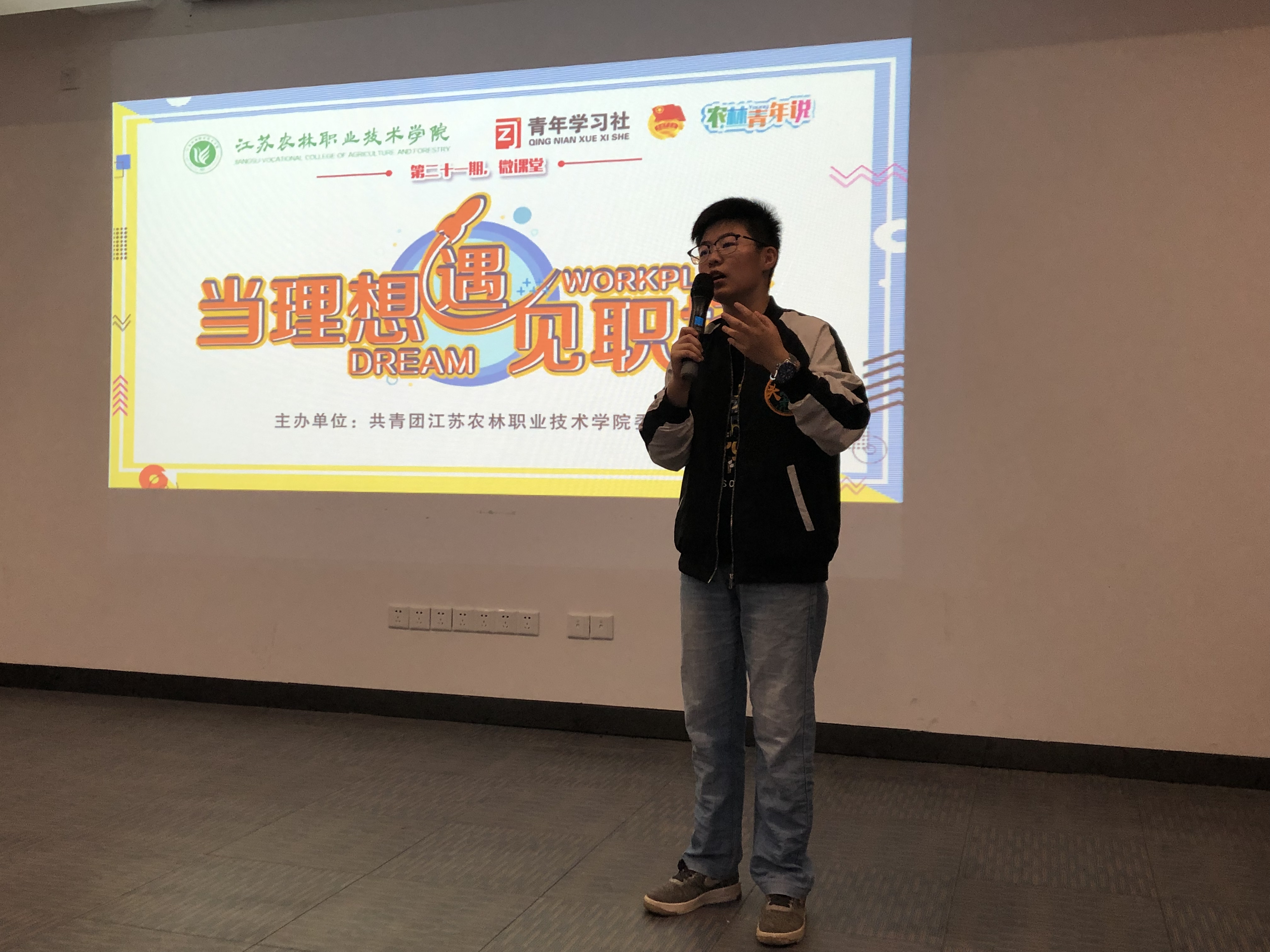 6月12日晚,由学院团委主办的“农林青年说”之当理想遇见职场讲座在新禾创客空间307举行。