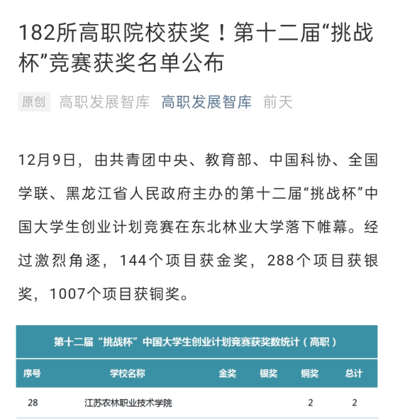 近日,由共青团中央、教育部、中国科协、全国学联、黑龙江省人民政府共同主办的第十二届“挑战杯”中国大学生创业计划竞赛闭幕式在东北林业大学落下帷幕,学院两件作品获铜奖。