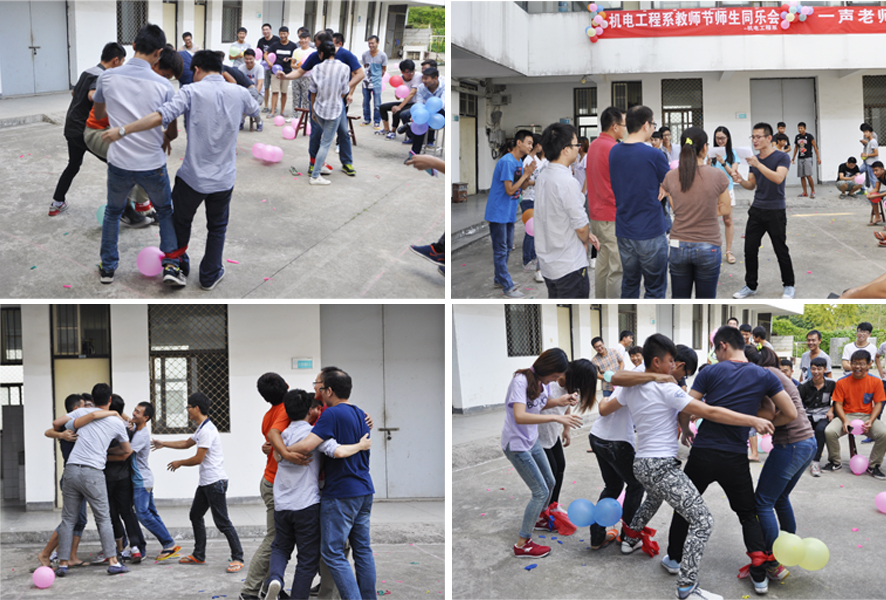 9月9日下午4点,由机电工程系分团委与各班同学精心组织的“一声老师,一生情”师生同乐会。在热烈的氛围下准时开场。活动共分为欢乐砰砰砰、“机”站到底、你画我猜和爱的抱抱四个环节,由老师和学生搭档参与。轻松温馨的游戏过程,老师和学生都乐在其中,现场笑声不断,真正地达到了师生同喜同乐的目的。活动后,学生也为自己敬爱的老师们献上了自制的贺卡和礼物,为此次师生同乐会画上了圆满的句号,也增添了几多温情。