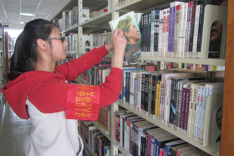 5月11日下午,经济管理系好人好事党小组在校图书馆开展图书整理活动。