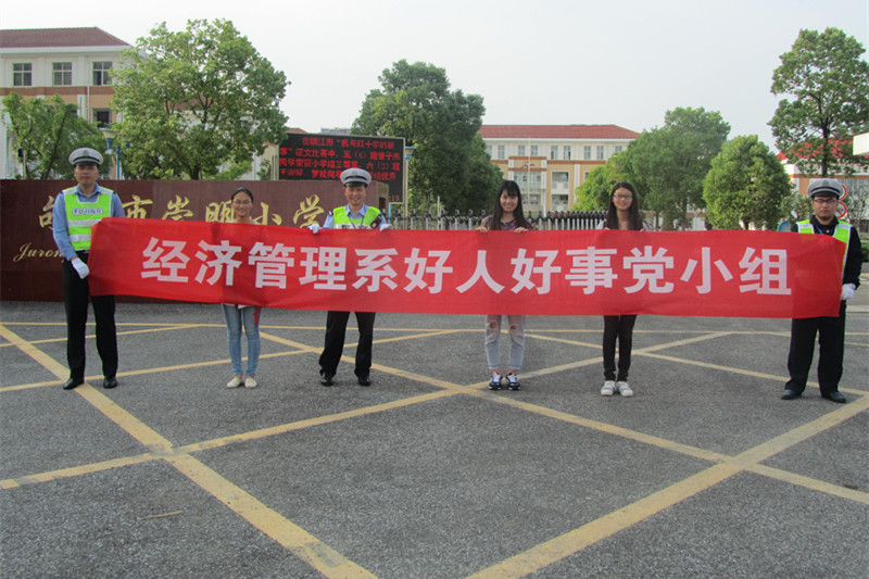 5月13日下午,经济管理系好人好事党小组在崇明路小学开展协助交警指挥交通系列活动。