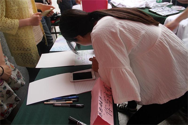 活动现场吸引了许多同学驻足,他们纷纷在许愿板上写下对母亲的关爱,在白色T恤上画出对母亲的爱意,在横幅上钉纽扣体会“慈母手中线”那无私与的爱,在家书上表达对母亲的思念,通过各种方式送上对母亲温馨而真切的祝福。同学们纷纷表示,母亲节不能陪伴母亲左右,感谢学校提供这个平台表达对母亲的情谊。本次活动共收到写给母亲的信件100余封,工作人员表示将尽快将信件整理并邮寄出去。
