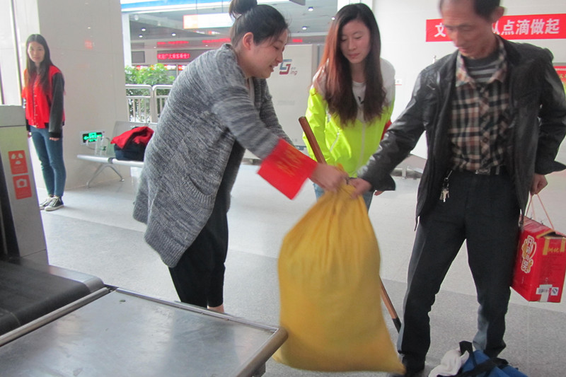 在车站的候车厅、进站口、安检口等,都有志愿者的身影,他们有的帮助旅客搬运行李,有的提醒旅客注意包裹的安检,还有的帮助卫生清扫人员打扫卫生,倡导文明出行,获得了汽车站工作人员的一致好评。