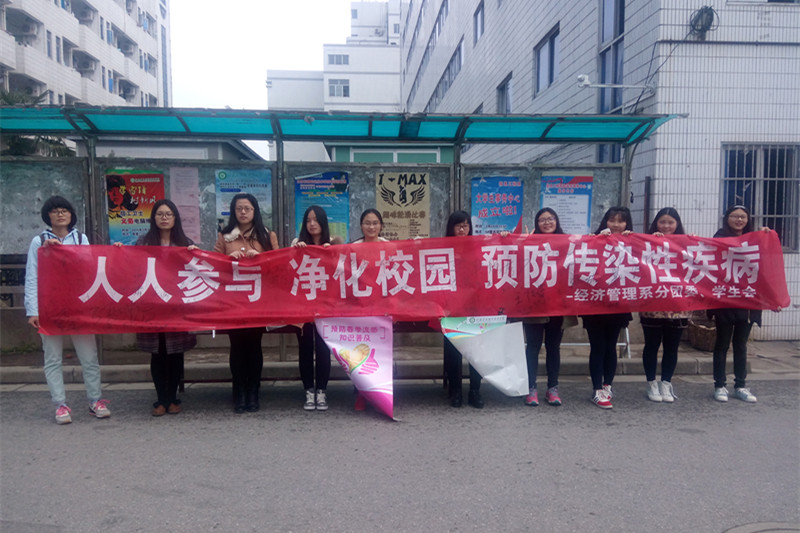 为预防流感,经济管理系分团委和学生会于3月27日中午在食堂门口开展“人人参与,净化校园,预防传染性疾病”的宣传活动。