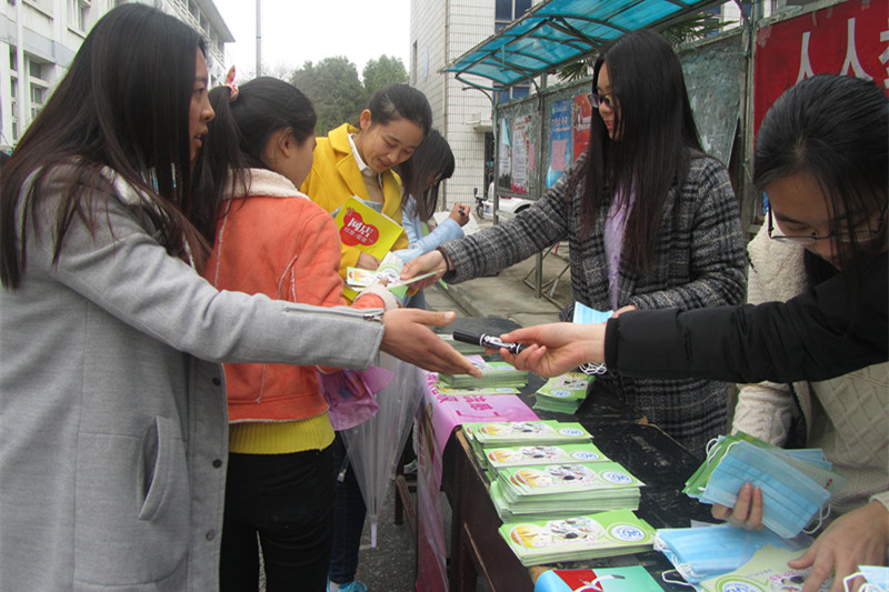 志愿者们以积极的态度向过往的同学讲解有关预防传染性疾病的知识,并提醒大家做好流感的预防工作,同时他们还发放预防流感安全手册、医用口罩等,以便同学们了解如何更好的预防禽流感以及其他春季流感。