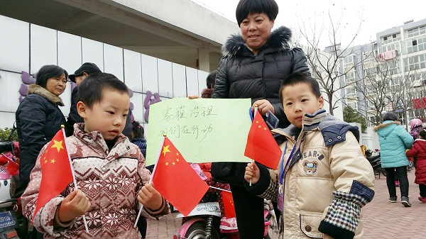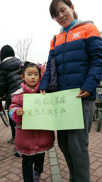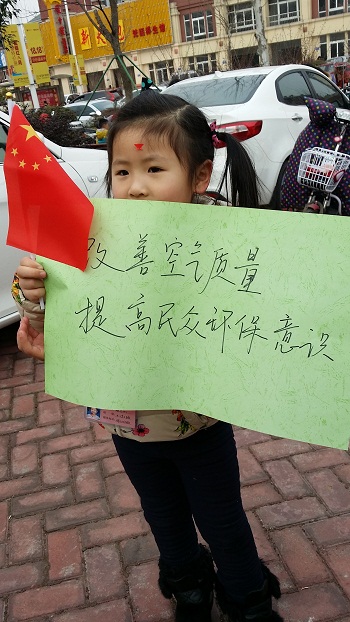 3月11日下午,志愿者们来到崇明幼儿园门口,他们的热情宣传吸引了过往的家长与孩子们。在现场高涨氛围的感染下,很多市民主动在印有“防治雾霾 我们在行动”的横幅上签字,表明自己对这次活动的支持。
