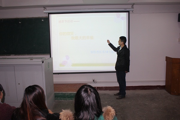 为了引导学生们孝顺父母,尊敬长辈,学会感恩,促进良好社会风气和和谐社会的形成,弘扬中华民族传统美德。由畜牧兽医系分团委主办,14专接本班承办的感恩活动,于2014年11月26日在理科楼309举行。