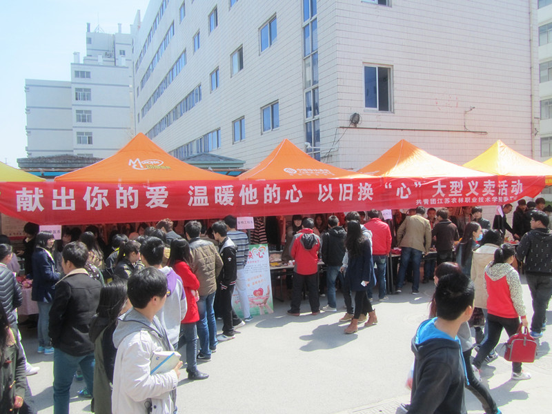我系于3月21日中午,在食堂门口,积极响应院团委的“献出你的爱,温暖他的心,以旧换‘心’大型义卖活动”吸引了大量在校学生和老师参与和选购。
