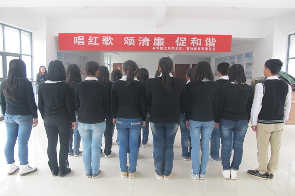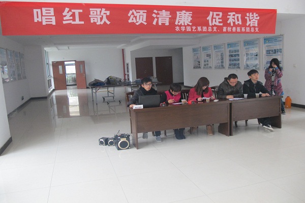 11月14日中午,研发楼一楼成了歌的海洋。 由农学园艺系团总支、畜牧兽医系团总支合办的以“唱红歌 颂清廉 促和谐”为主题的廉政歌曲大合唱比赛在这里举行。此次比赛经过系部初赛决选出8支队伍参加决赛。最终由13动物医学(3+2)1班以及13作物生产技术夺得本次比赛的冠军。