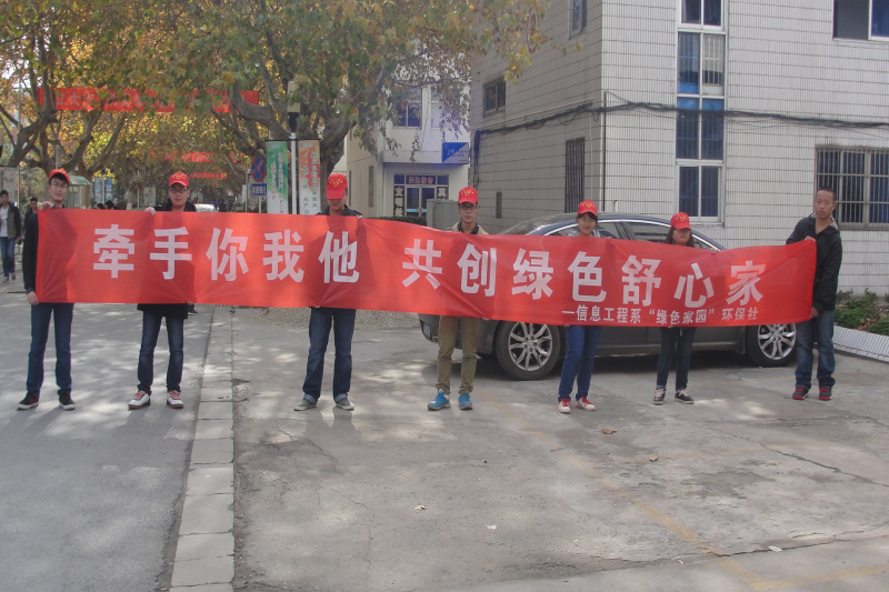 为了以实际行动迎接即将到来的90周年校庆,进一步加深学生爱校荣校观念,引导教育广大同学加入到美化校园的行列,11月26日,信息工程系团总支“绿色家园”环保社在宿舍区开展了“牵手你我他,共创绿色舒心家”活动。
