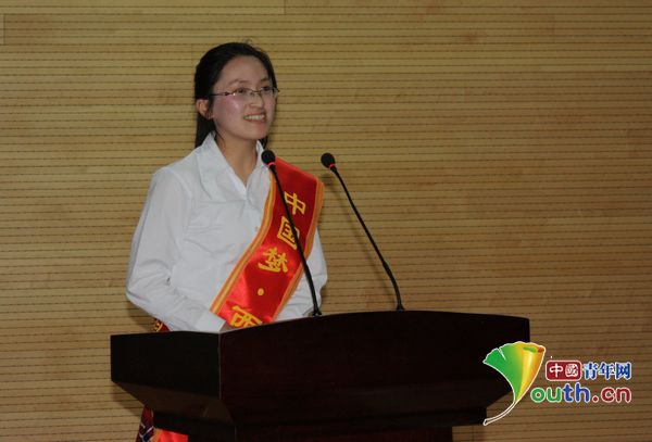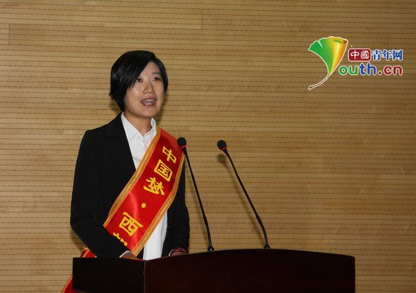 许晓艳在“中国梦·西部情”西部计划十周年报告会上演讲。中国青年网记者 李彦龙摄