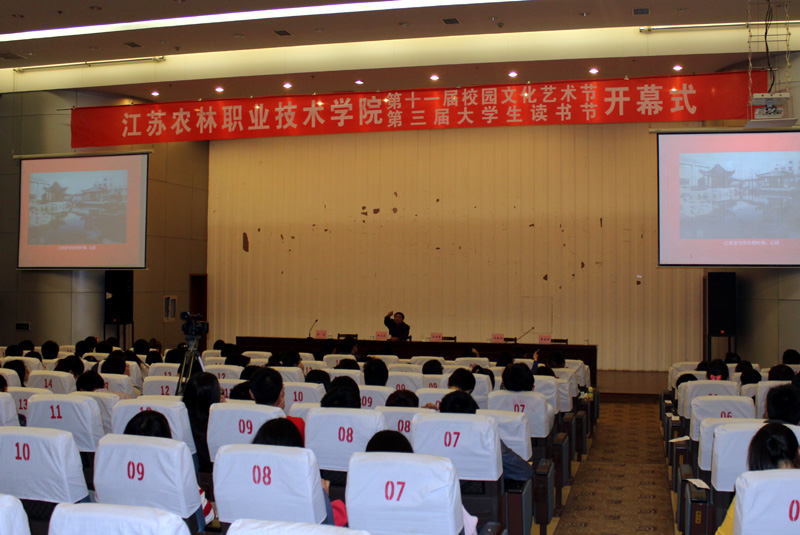 开幕式上,图书信息中心主任曹金留宣读了第三届大学生读书节文件,团委书记、学工处处长毕德全宣读了《关于举办第十一届校园文化艺术节的通知》,学院老领导尹汉学应邀为同学们作了校史讲座。