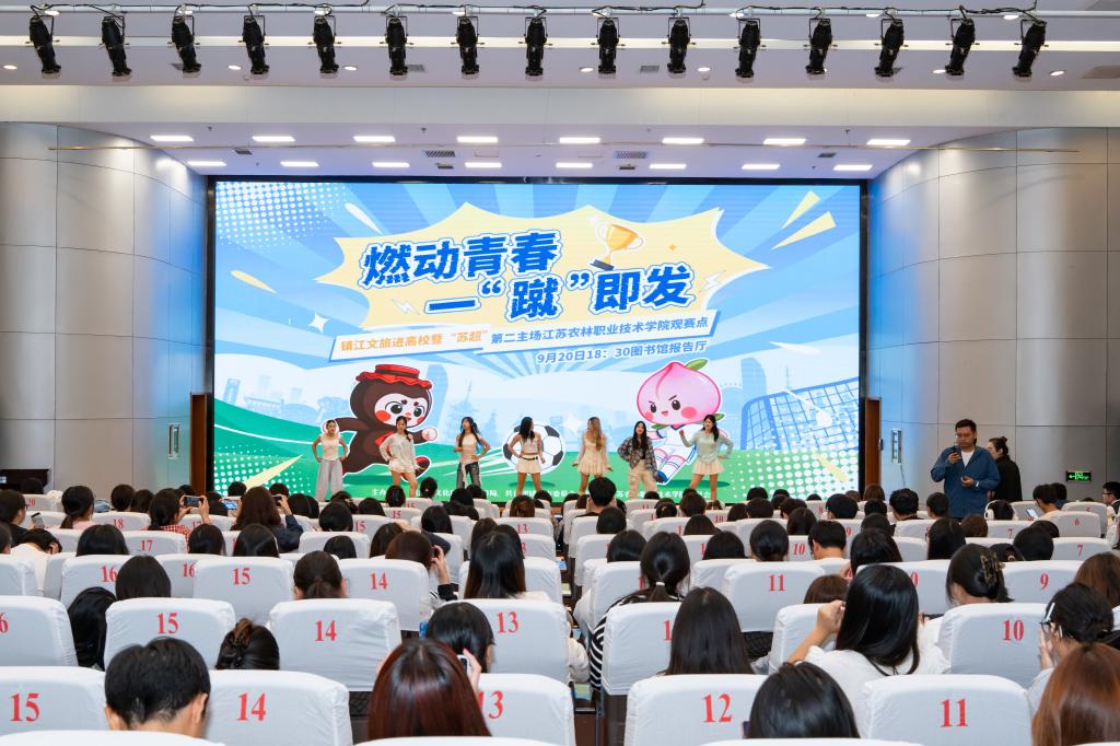 9月20日晚,由镇江市文化广电和旅游局、共青团镇江市委员会与共青团江苏农林职业技术学院委员会联合主办的镇江文旅进高校暨“苏超”第二主场观赛活动在我校图书馆报告厅圆满落幕。我校学子以饱满的热情深度参与活动,展现了农林青年的青春活力与责任担当,为活动成功举办注入了强劲青春动能。