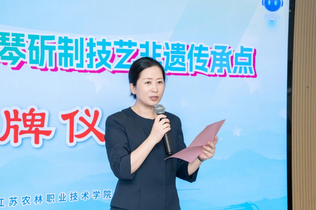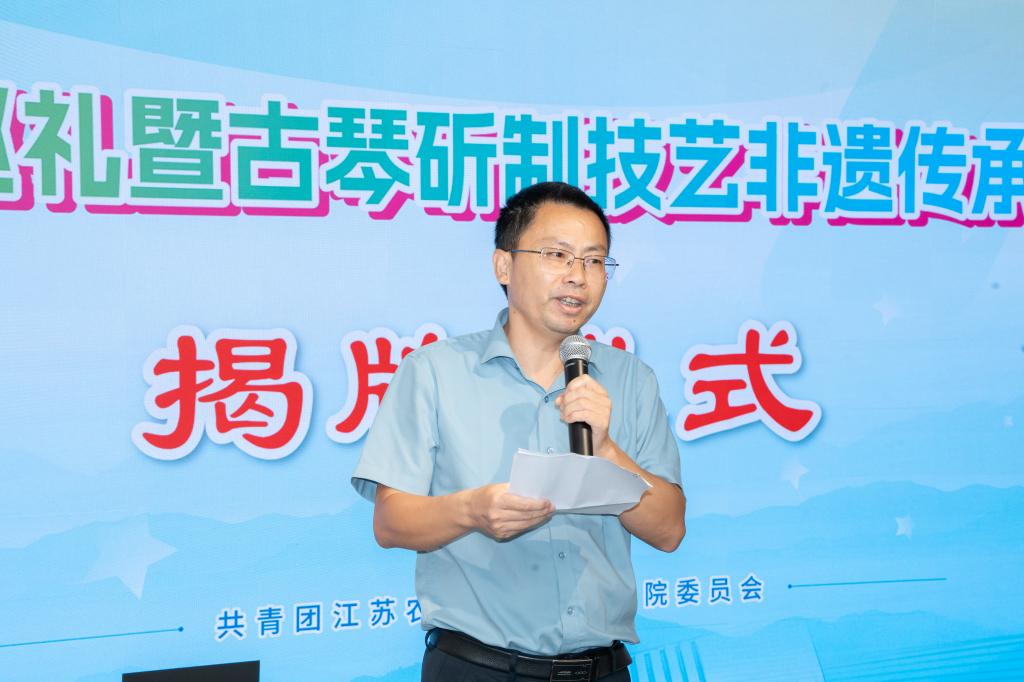 9月24日,2025年社团巡礼暨古琴斫制技艺非遗传承点揭牌仪式在大学生艺术中心举办,学院党委委员、副院长王瑾,镇江市润州区政协副主席民进镇江市委会副主委潘煜,江苏省非遗古琴斫制项目传承人蔡伟,镇江市润州区人大代表陈晓燕,学院相关部分负责同志及各社团代表齐聚一堂,共同见证这场文化盛宴。