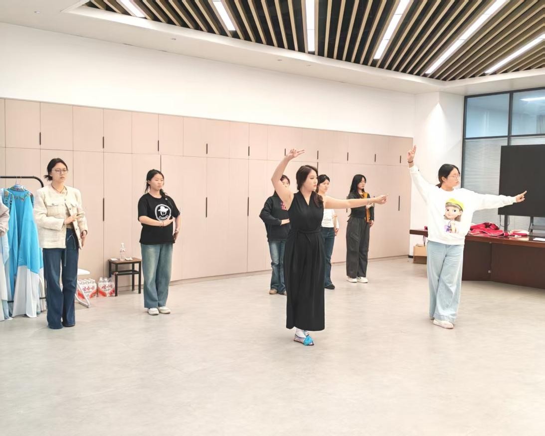 活动现场,龚莉莉老师首先观看了扬剧社同学们准备的经典扬剧片段排练。同学们虽显稚嫩但充满热情的表演,得到了老师们的肯定。随后,龚莉莉老师结合自身数十年的舞台经验,对同学们的唱腔、身段、台步乃至眼神进行了细致入微的点评和“手把手”的示范。并强调,扬剧艺术博大精深,既要注重程式规范,又要融入真情实感,做到“形神兼备”。她手把手示范教学,让同学们在互动中快速掌握要领,现场氛围热烈融洽。