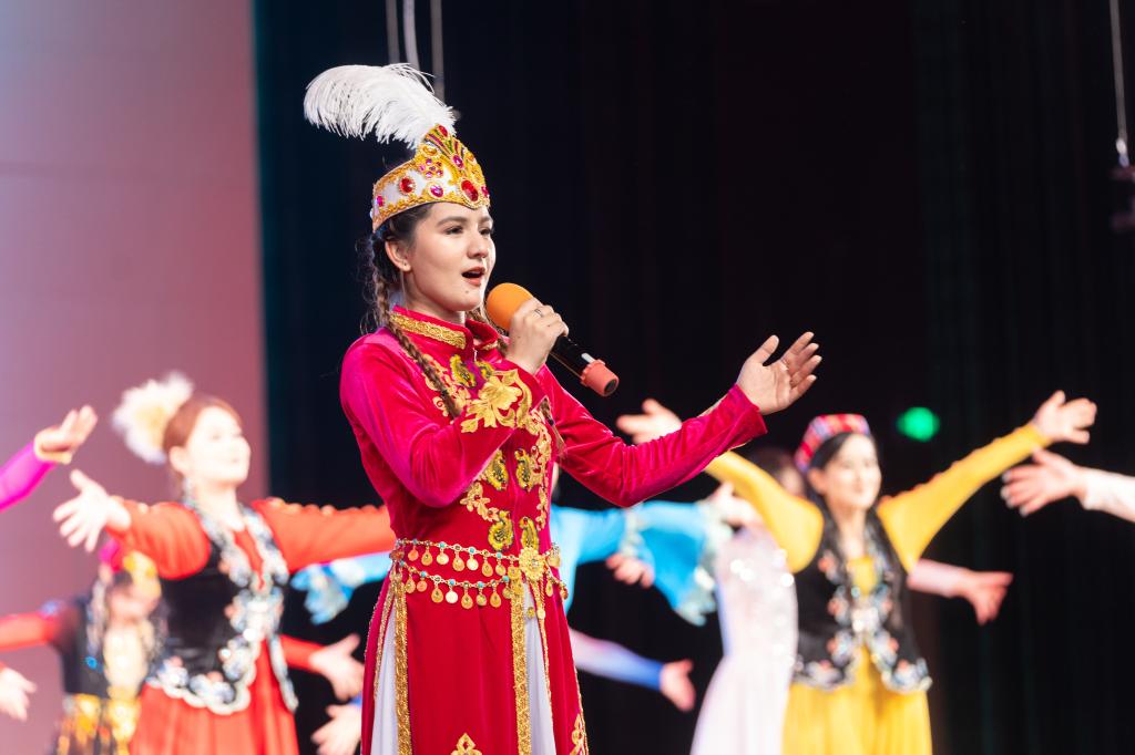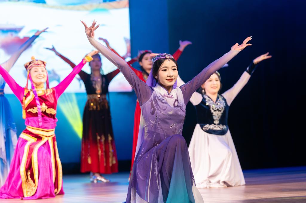 活动在故事分享《向新疆致敬》中拉开帷幕,真挚动人的援疆故事与《一口“团结锅”煮出六民族亲情》的温情叙事,瞬间拉近了两校学子的心灵距离。随后,歌伴舞《打起手鼓唱起歌》以欢快节奏点燃全场,维吾尔族特色器乐表演《这里是新疆》与舞蹈《舞越天山》勾勒出西域风情。由学院团委美育中心助演的器乐合奏《云宫迅音》融合传统与现代,展现中华文化多元魅力,大学生艺术团合唱《落叶归根》深情表达了各族儿女对祖国的眷恋。最终,活动在歌曲《凤凰花开的路口》中圆满落幕。