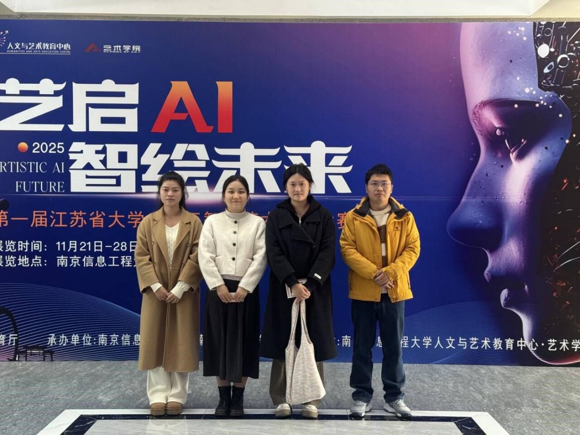 近日,第一届江苏省大学生人工智能艺术创作大赛优秀作品展在南京开幕。该赛事由江苏省教育厅主办,以推动人工智能(AI)技术与美育深度融合为核心目标,共征集绘画、设计、影像、音乐四大类别作品1585件,其中173件优秀作品经初筛入围终评,并在南京信息工程大学举办现场展览。经专家评审组专业评定与观展高校投票,我院团委推荐的作品凭借鲜明地域文化特质、巧妙AI技术融合及精湛艺术表现力,荣获一等奖2项、三等奖6项。
