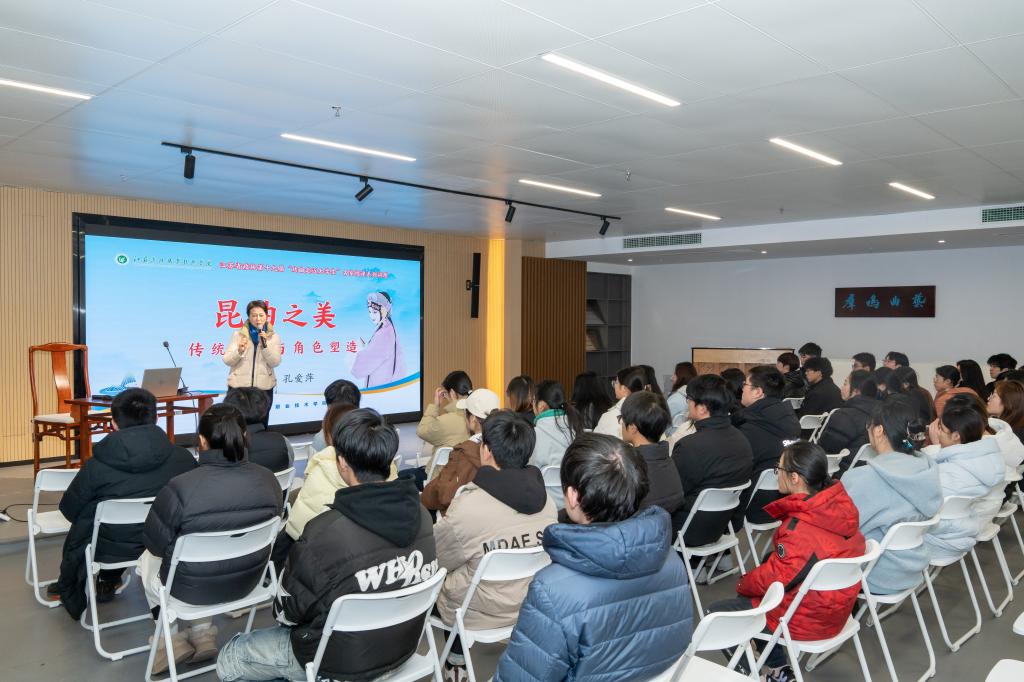 为弘扬中华优秀传统文化,提升大学生艺术素养,12月17日,校团委美育教育中心特邀著名昆剧表演艺术家孔爱萍老师莅临我校,开展“戏曲走近大学生”名家授课讲座。